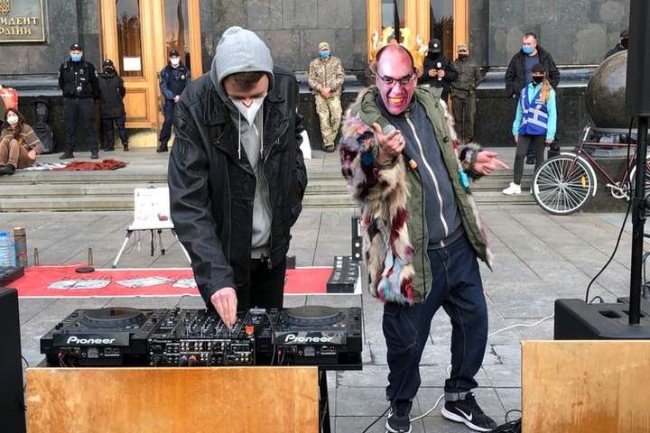 Під Офісом Зеленського влаштували акцію проти міністра охорони здоров’я Максима Степанова через закупівлю дорогих захисних костюмів. Акцію назвали «Хіп-хоп» вечірка на честь «першого мільярда Степанова» pic.twitter.com/O4IXu87pKL