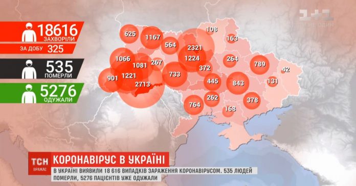 За добу в Україні — 325 нових випадків інфікування коронавірусом. Це на понад 110 менше, ніж було напередодні, і на 200 — ніж позавчора. За даними Міністерства охорони здоров’я, загалом інфікованих українців — 18 616. Лідерами за поширенням коронавірусу залишаються Буковина, Київ і Прикарпаття. За останню добу від COVID-19 померло — 17, а одужали — 160 громадян. Більше про коронавірус в Україні